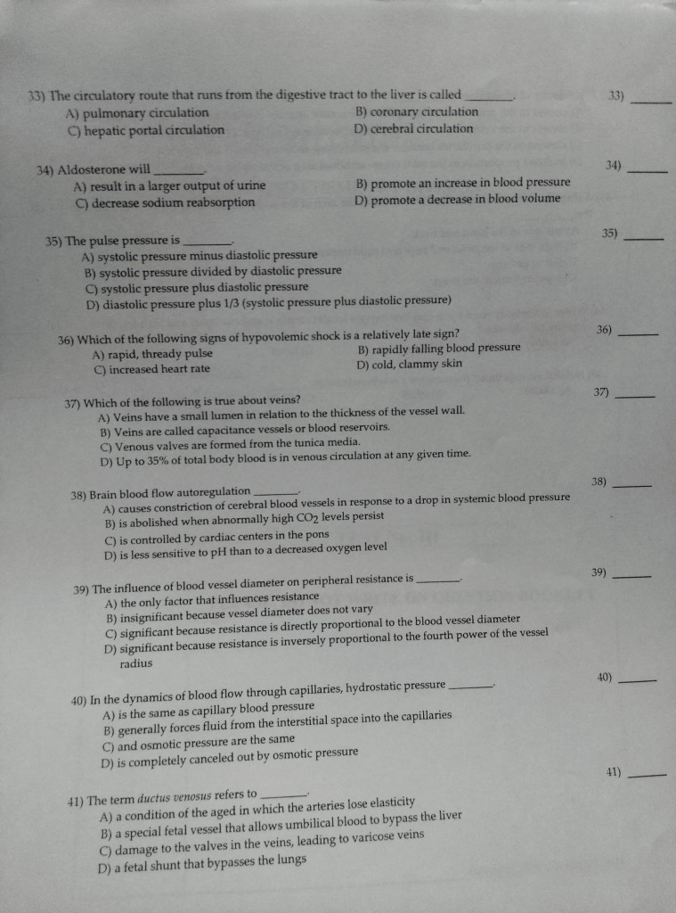 Solved 33 The Circulatory Route That Runs From The Chegg Com